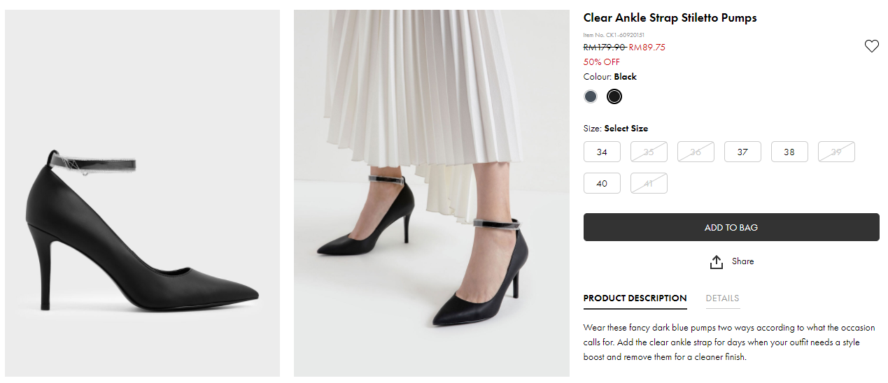 ▼ Clean Ankle Strap Stiletto Pumps 折扣50%—— 后只需RM84.75 (原价:RM179.90)