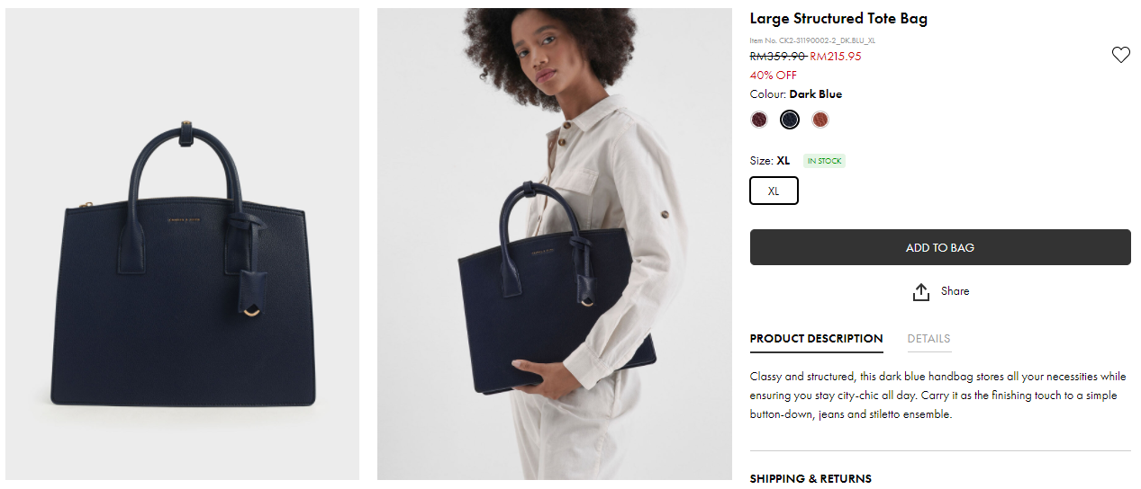 ▼ Large Structured Tote Bag 折扣40% —— 只需RM215.95(原价:RM359.90)