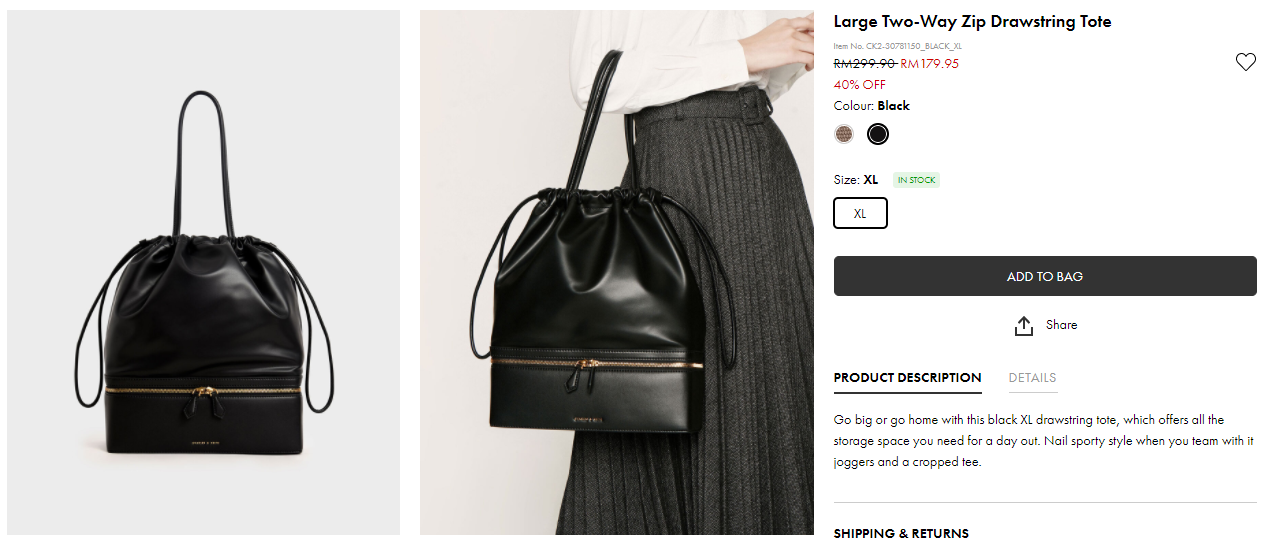 ▼ Large Two-Way Zip Drawstring Tote 折扣40% —— 只需RM179.95(原价:RM299.90)