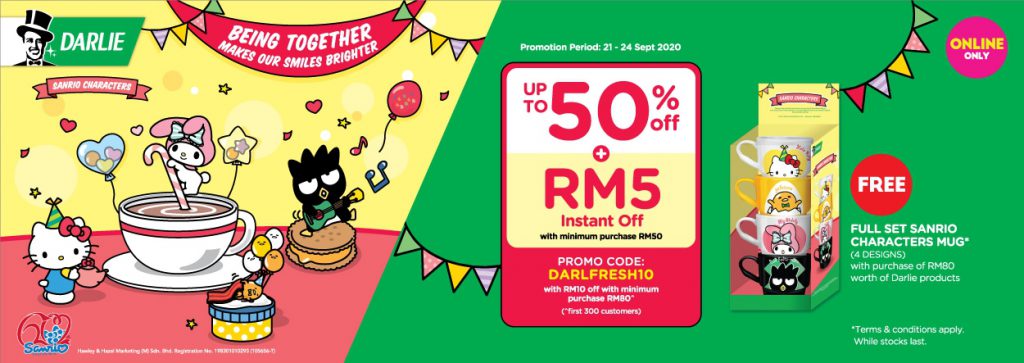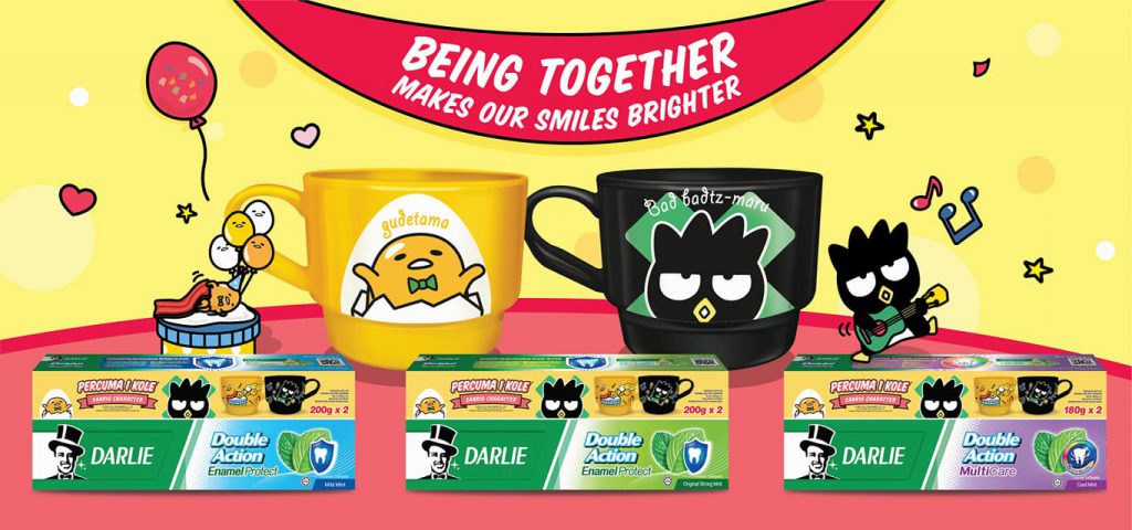 ※只需通过Watsons 网店购买Darlie 产品并消费RM80 或以上即可免费获取全套4款盒装的Sanrio 角色瓷杯!