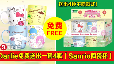 ※只需通过Watsons 网店购买Darlie 产品并消费RM80 或以上即可免费获取全套4款盒装的Sanrio 角色瓷杯!