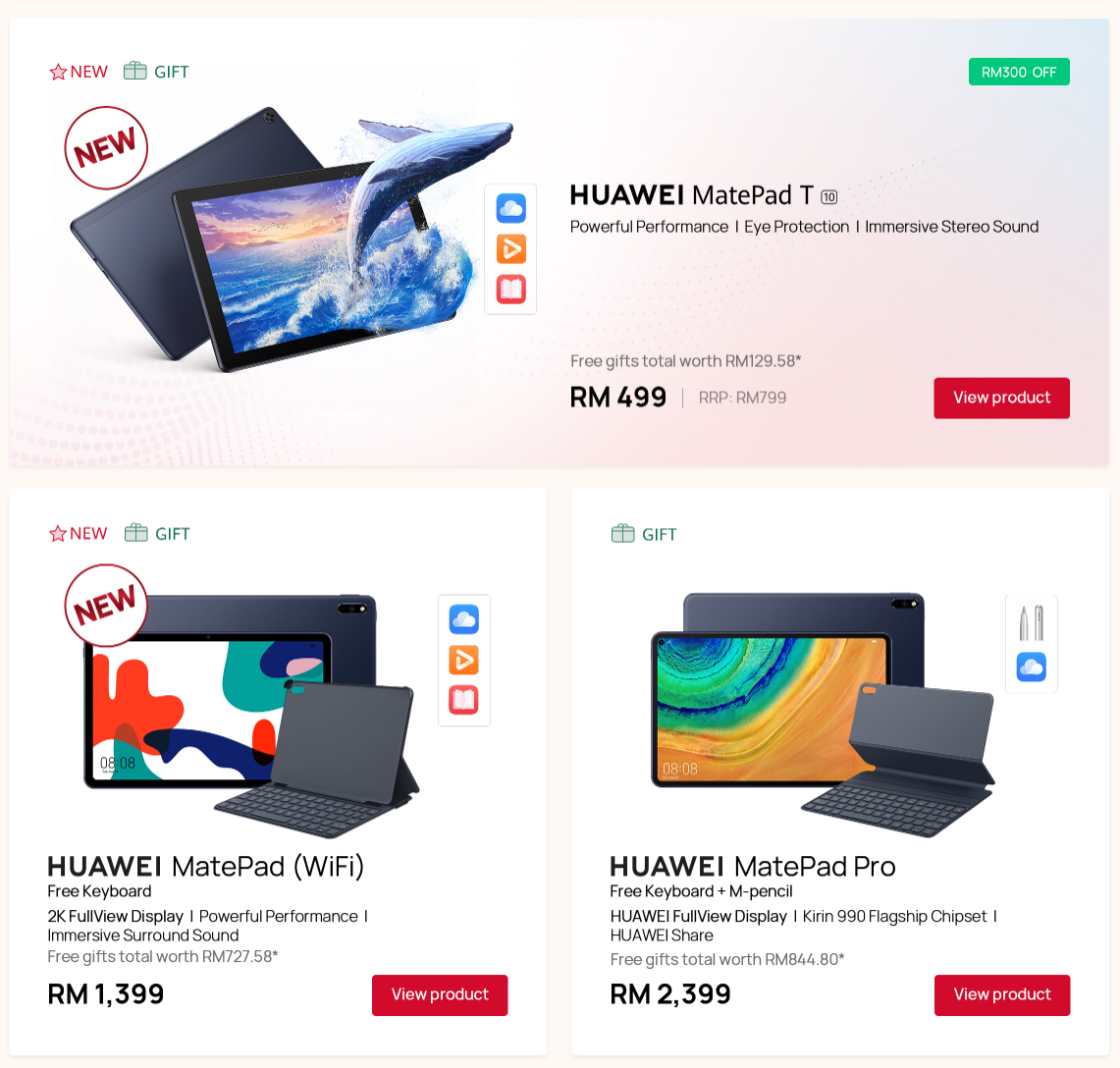 ▼ 最新推出 Huawei MatePad T10 只需RM499(原价RM799),还免费获得价值RM129.58 赠品!