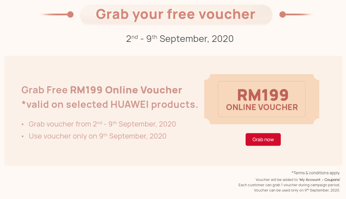 ▼ 另外~在这次优惠中购买手机还可获得RM199 Online Voucher!