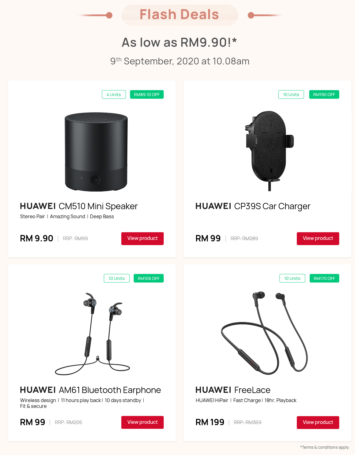 促销活动:华为【9.9限时大促销】!最低只需RM9.90!