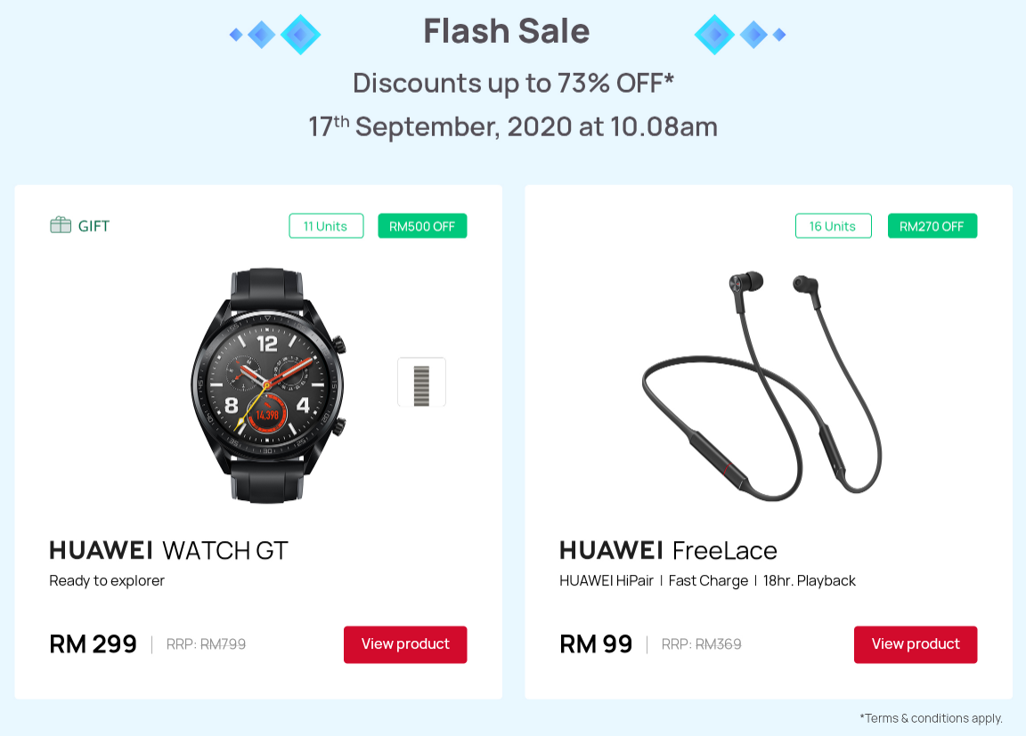这项优惠只在9月17日(星期四)的Huawei 官方网站推出限时大优惠!促销的商品中有智慧型手机、智能手表、平板电脑及蓝牙耳机等都享有折扣优惠!