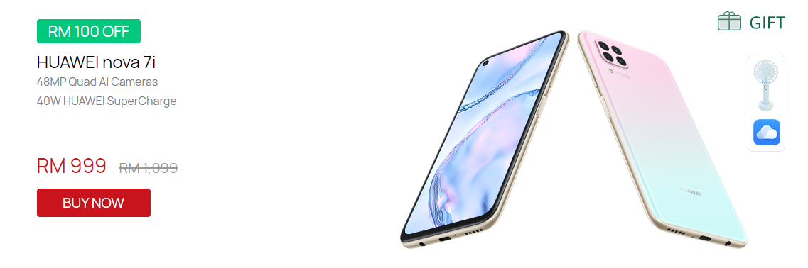 ▼ Huawei nova7i 手机只需 RM999(原价RM1099),还可获得Portable Fan。
