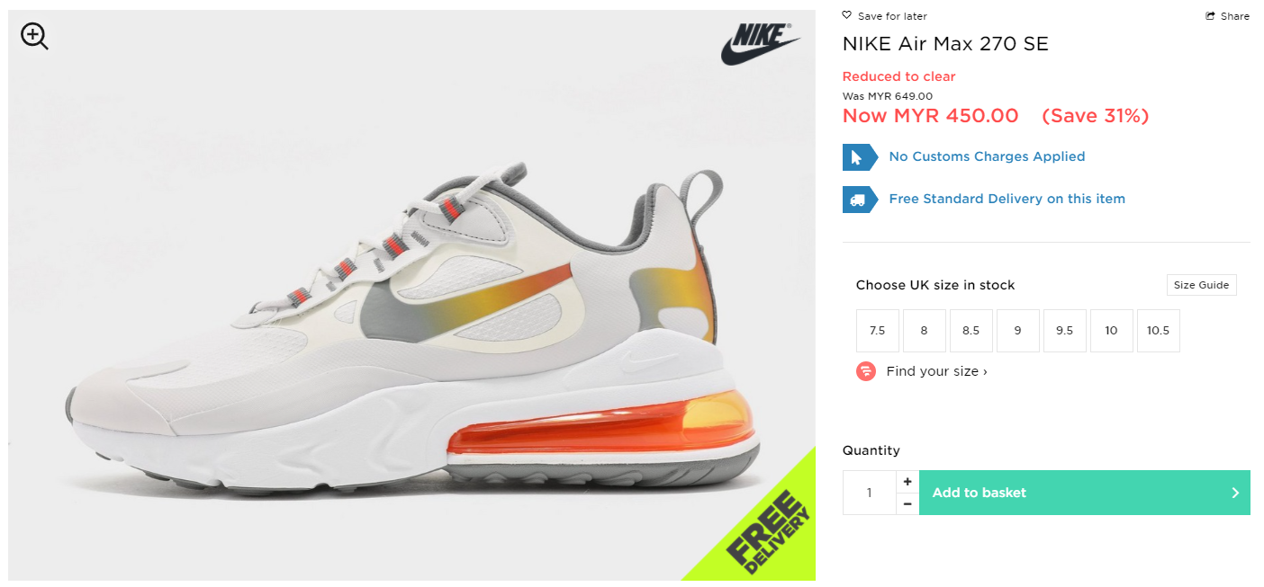 ▼ NIKE Air Max 270 SE-只需RM450(原价 RM649)!
