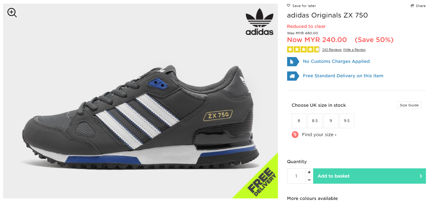 ▼ adidas Originals ZX 750 – 只需RM240(原价 RM480)!