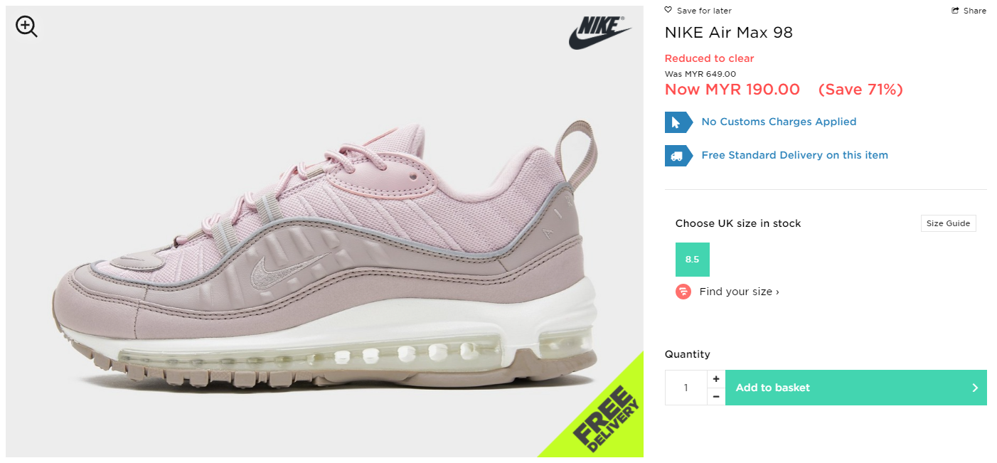 ▼ NIKE Air Max 98 – 只需RM190(原价 RM649)!