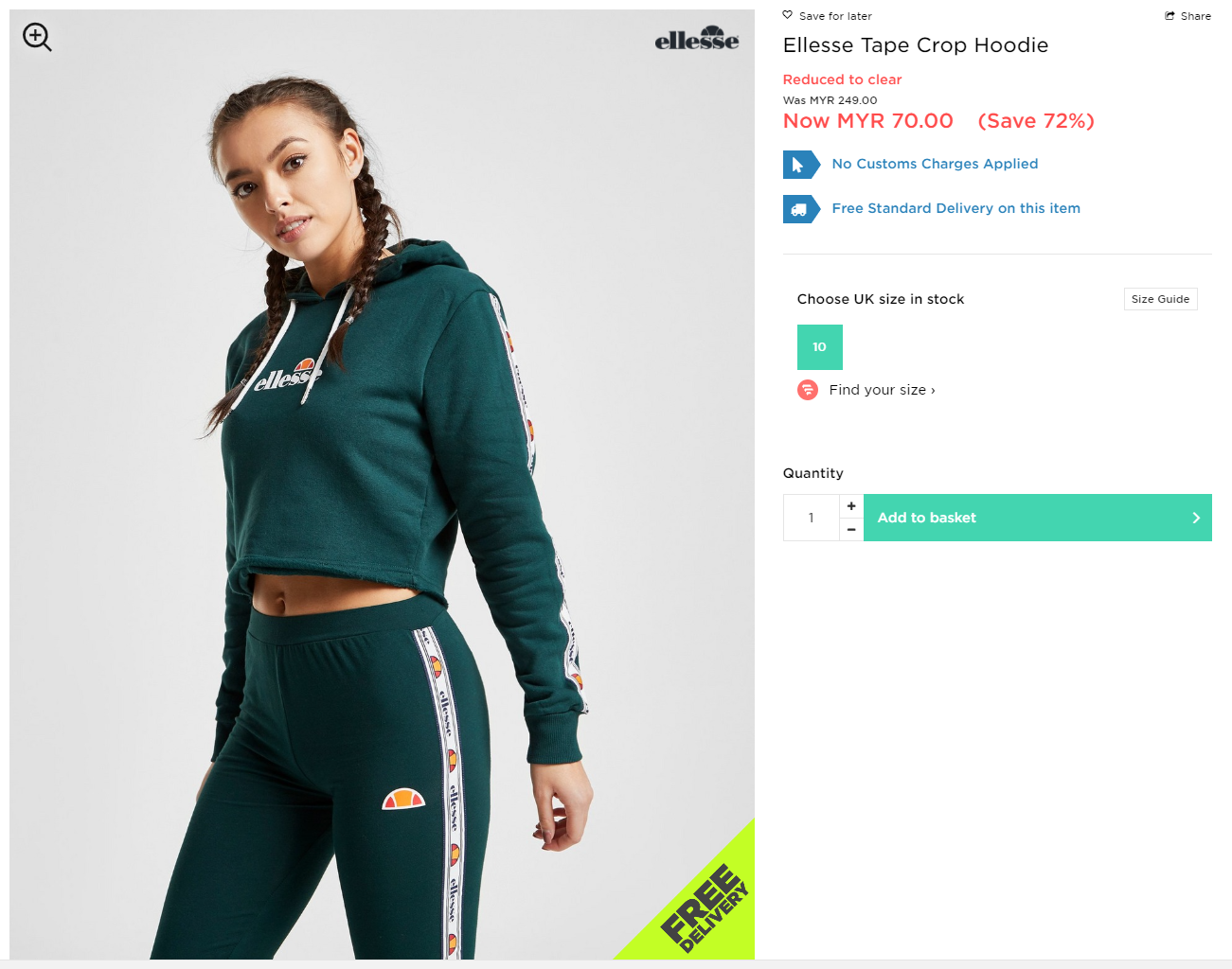 ▼ Ellesse Tape Crop Hoodie – 只需RM70(原价:RM249)