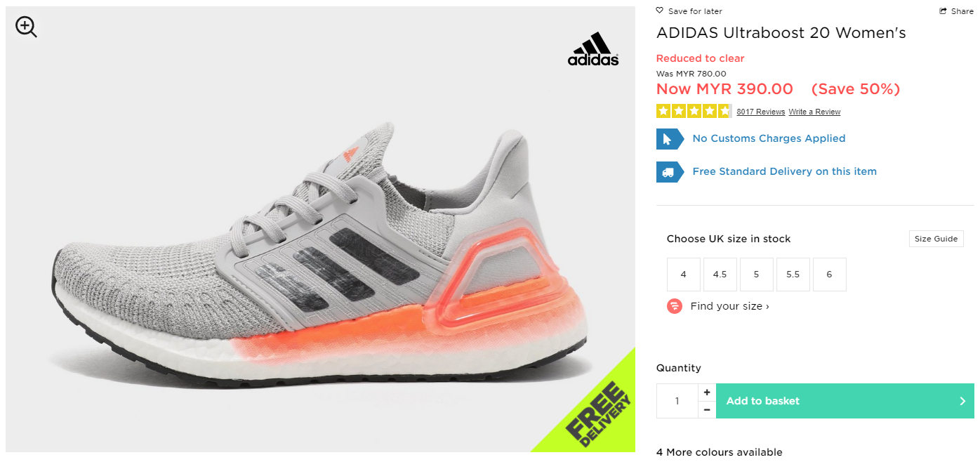 ▼ ADIDAS Ultraboost 20 Women’s – 只需RM390(原价 RM780)!
