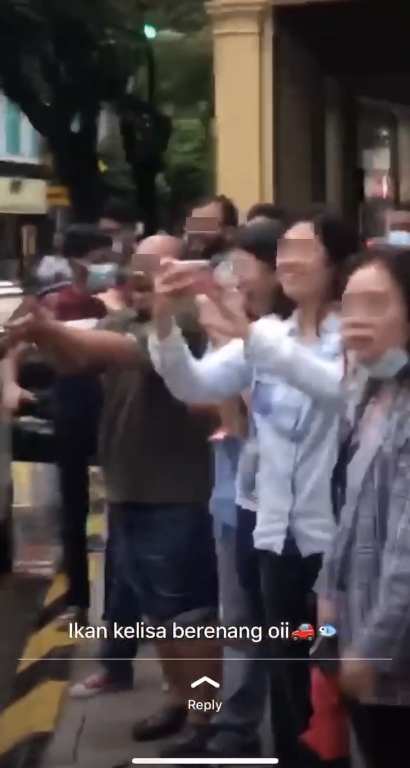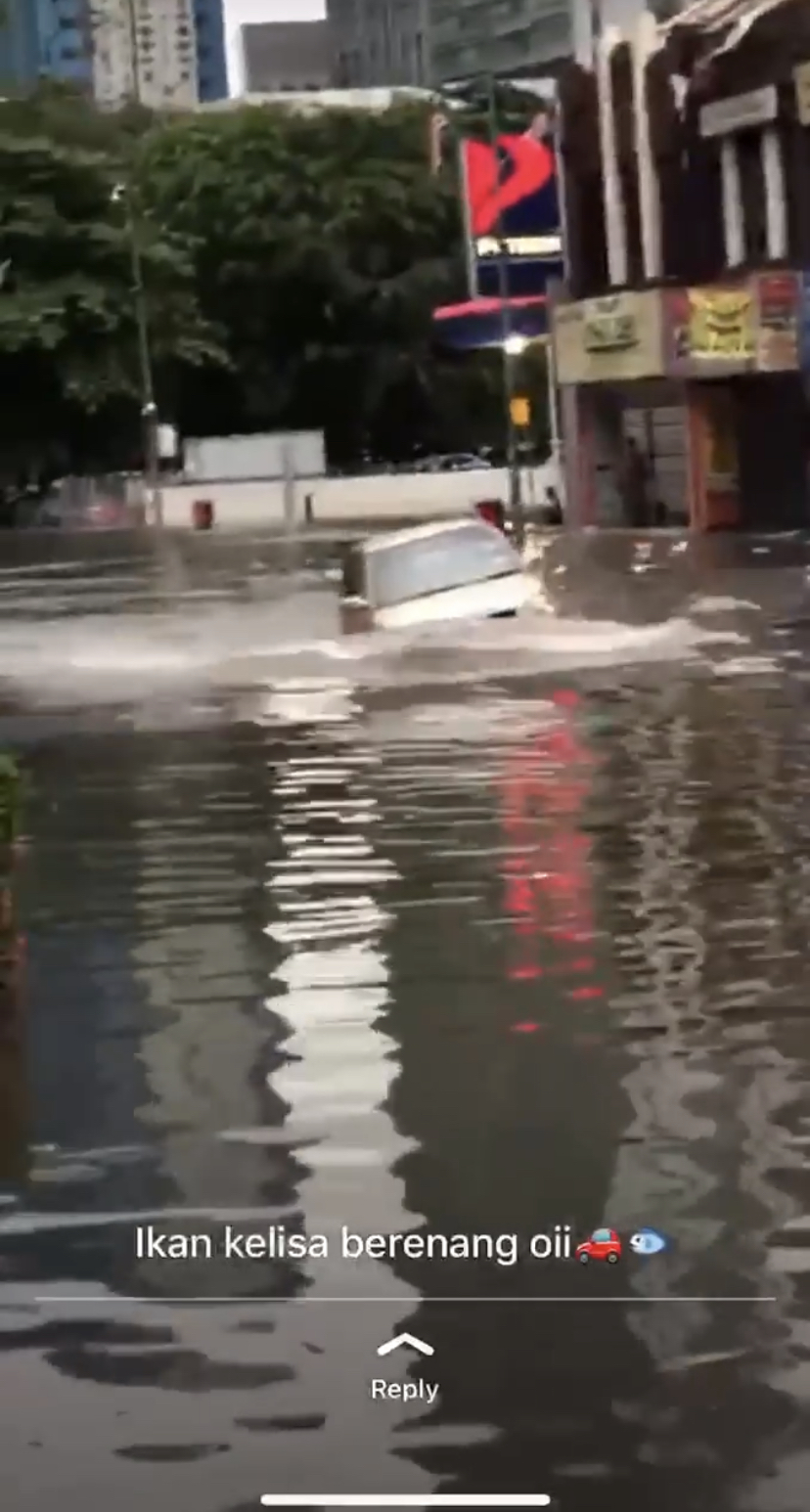 站在附近围观的民众都纷纷拿起手机拍下这一幕。看着小小的 Kelisa 在水里“漂着走”,来自不同种族的民众都不约而同地为司机打气加油,但也为他捏了一把冷汗!