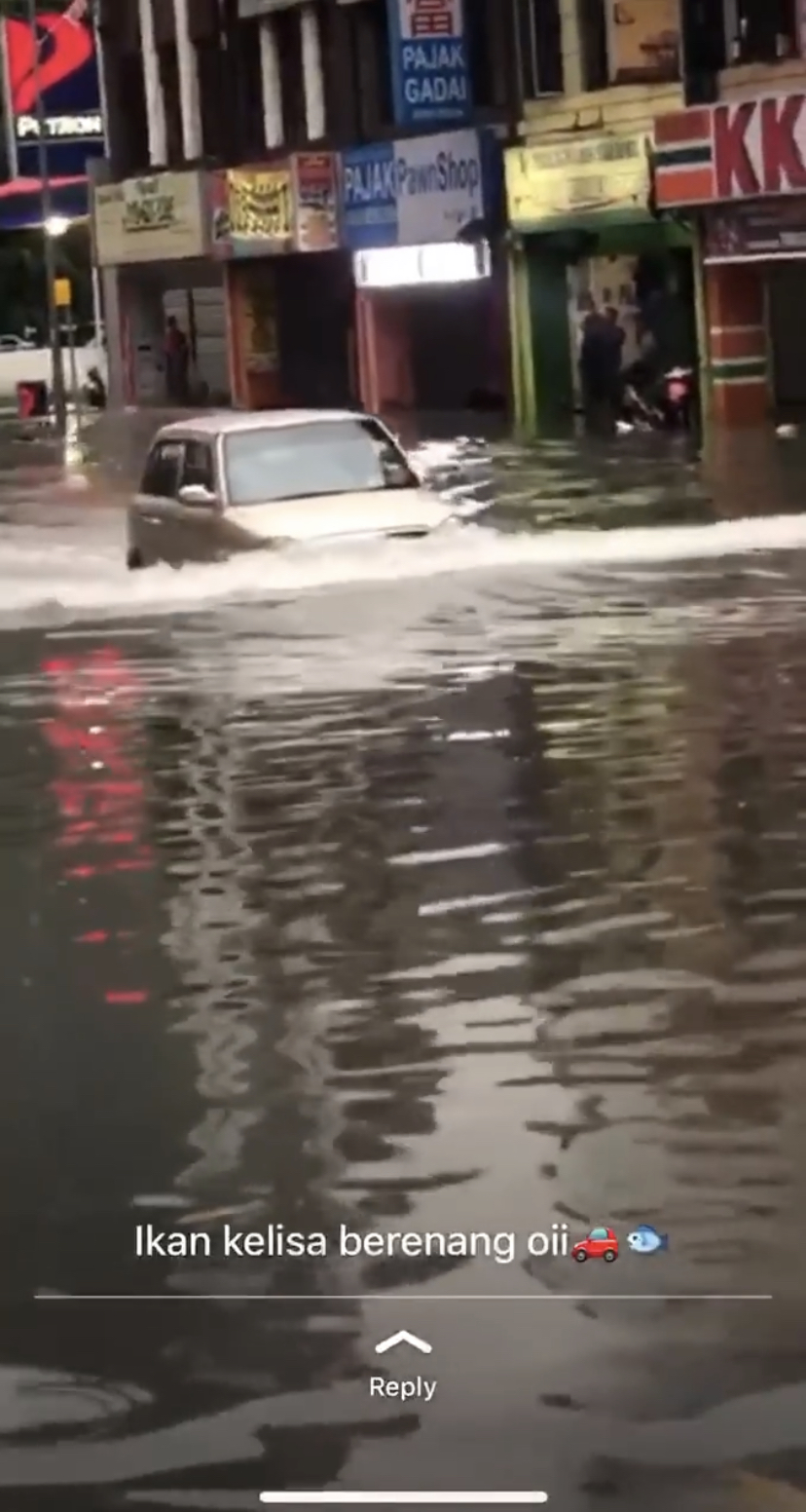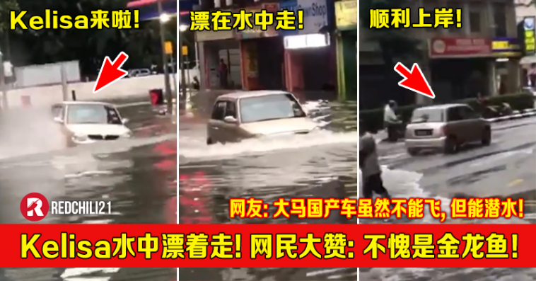 雨下不停,很多地方已经开始淹水….. 就在这个时候,其中一个淹水的路段出现了一辆 Perodua Kelisa,不畏水患,在水里勇往直前!当时在场的网民将视频拍摄下来并上传至社交媒体,迅速引起疯传!