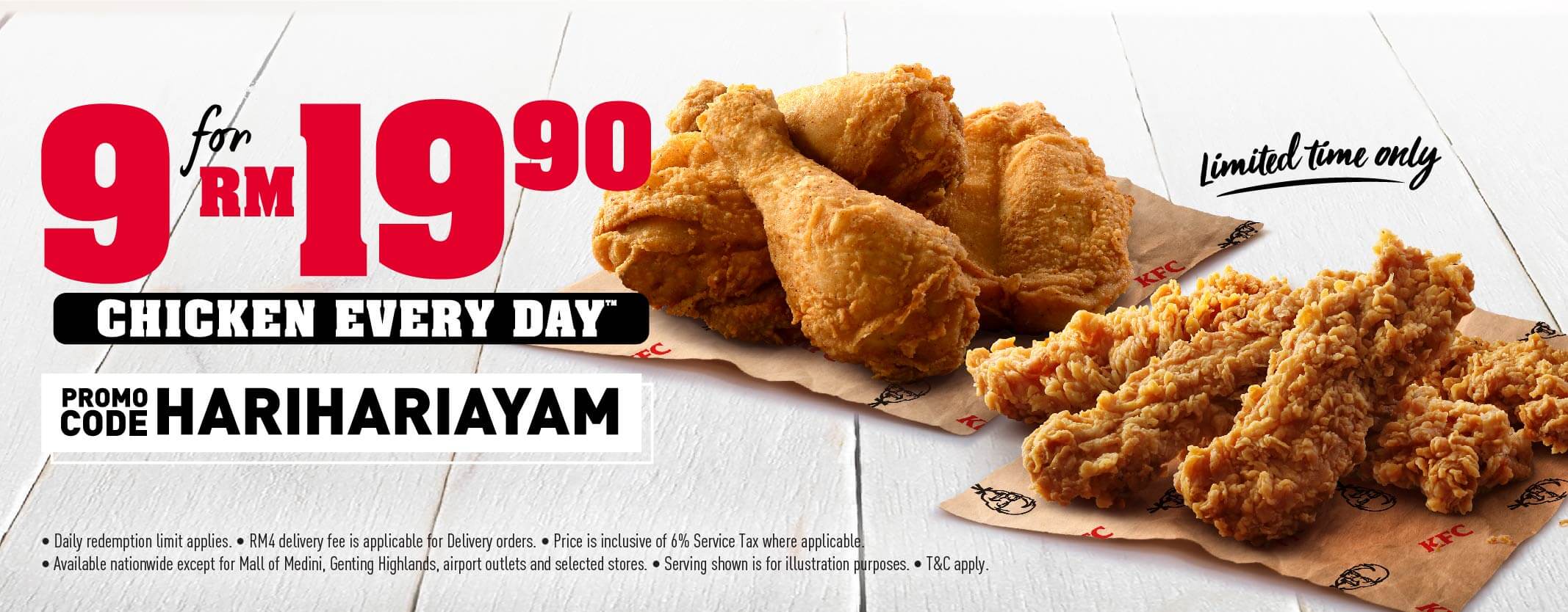 - 使用KFC App购买,必须输入折扣码 HARIHARIAYAM