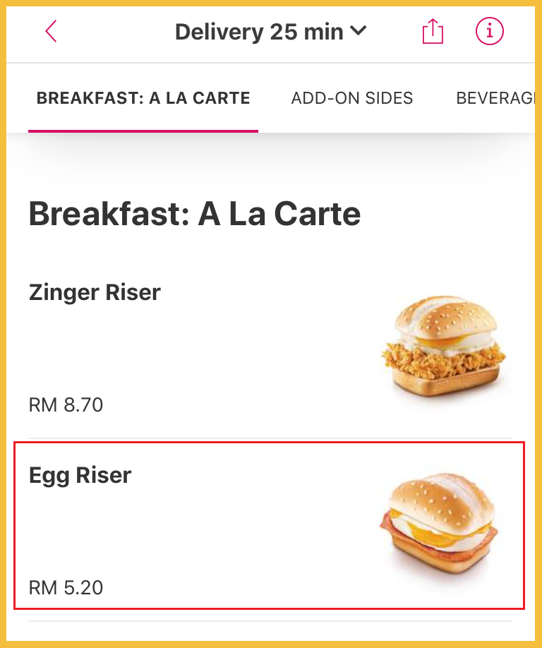 ▼为了达到全新优惠码的RM15最低消费,所以一次要订购3粒 Egg Riser 汉堡的!(可以和家人朋友共享哦,不然可以添购其它的食物来达到最低消费)
