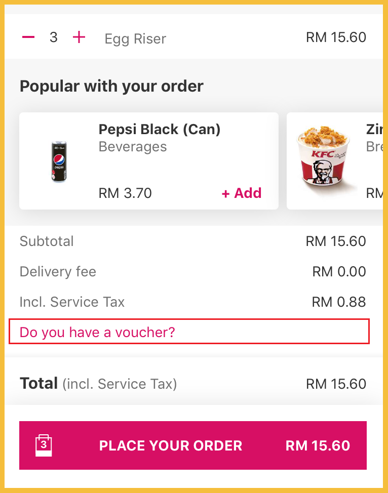 话不多说,马上来教大家如何用这个全新优惠码买到最便宜的KFC Egg Riser!