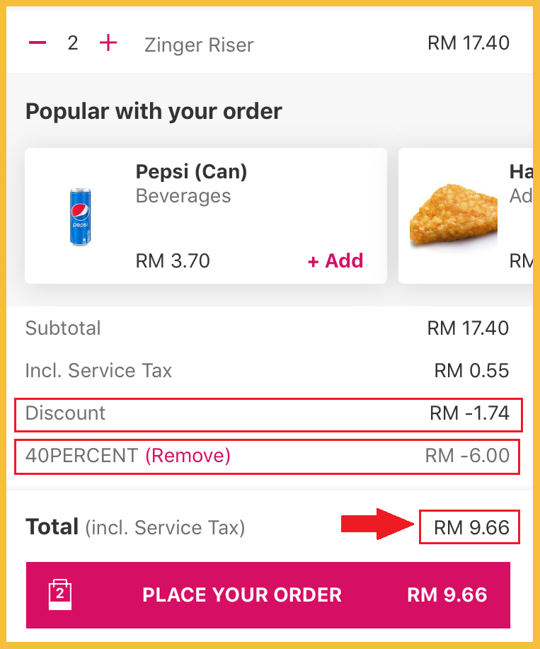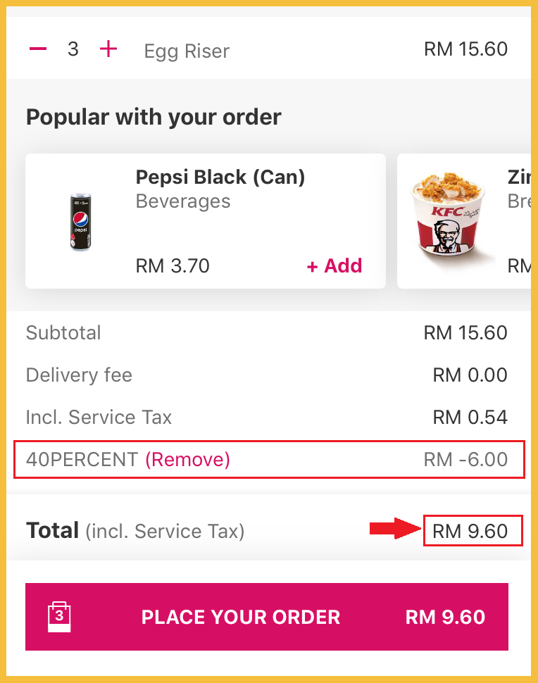 ▼如果要更以更便宜的价格买到KFC Zinger Riser, 可以选择Pick Up 来额外获得10%的折扣哦!
