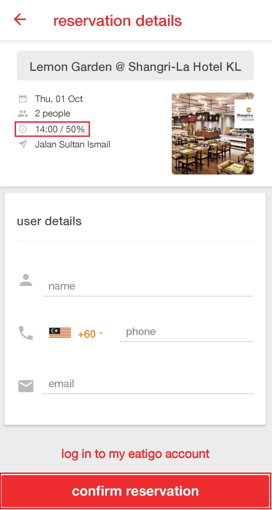 - 必须使用Eatigo App 才可获得折扣高达50%