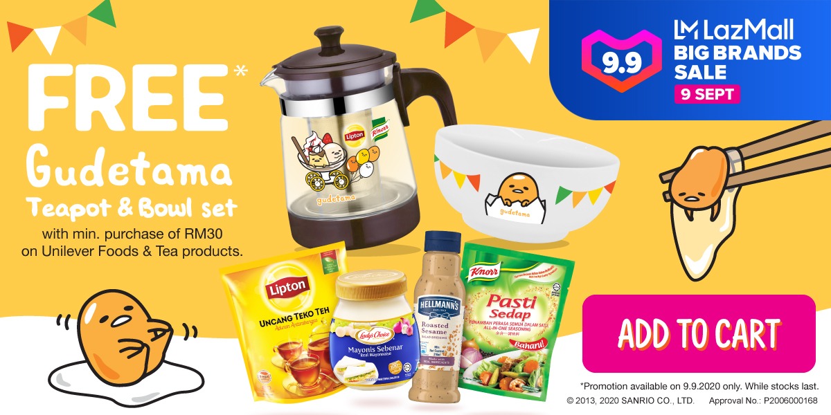 促销活动:购买RM30 或以上Unilever饮食产品,可免费获得一组Gudetama茶壶和碗
