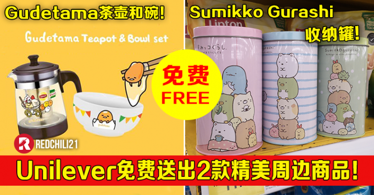 ▼ 只要你购买Unilever 食物或茶饮,就可免费获得一组Gudetama 系列的茶壶和碗!