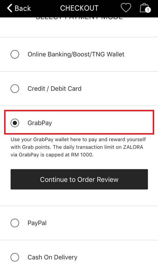 ※ 注意,小编是使用Zalora App 才能通过GrabPay 付款。
