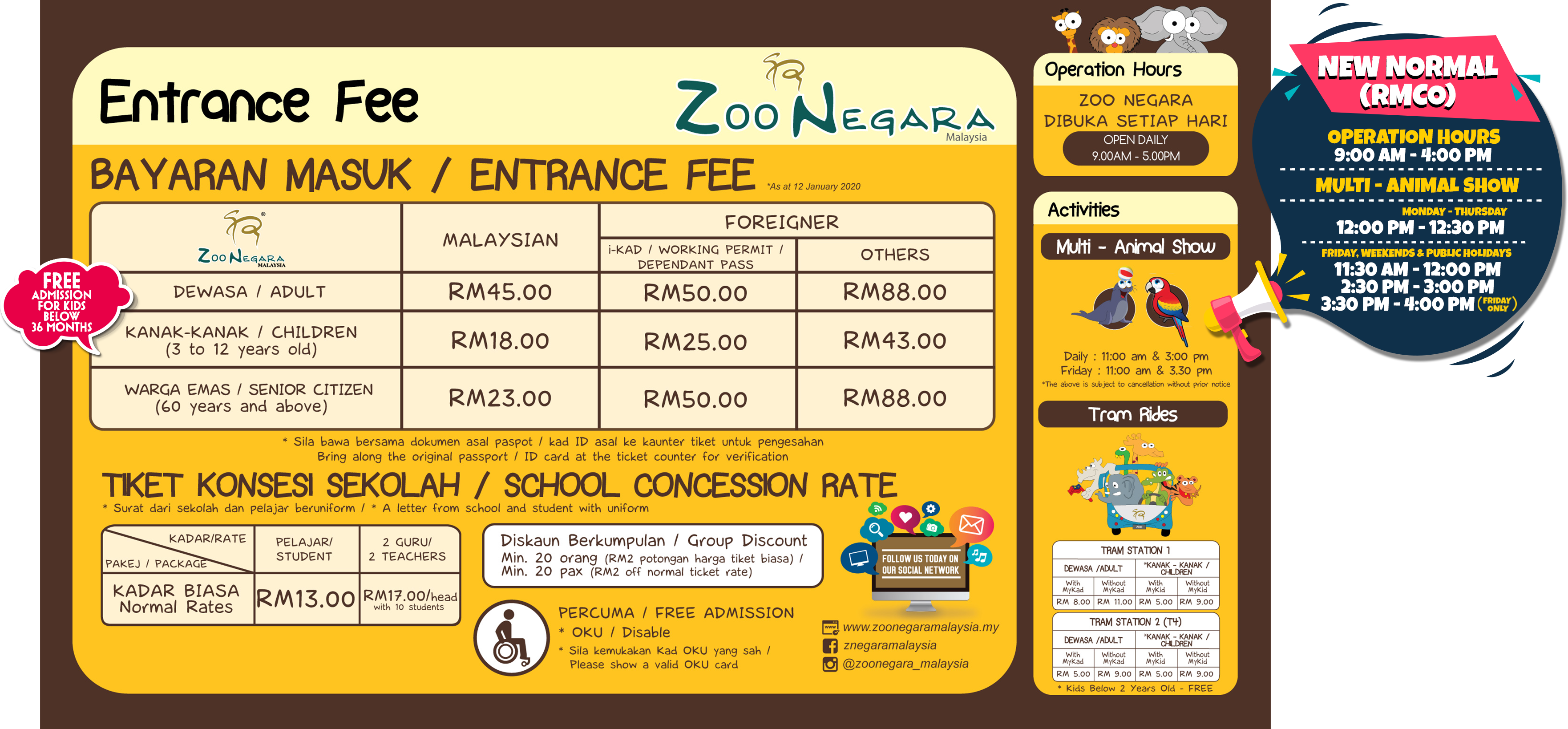 ▼ 在这里为大家附上Zoo Negara入门票的价格表!
