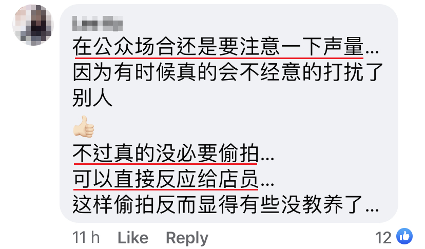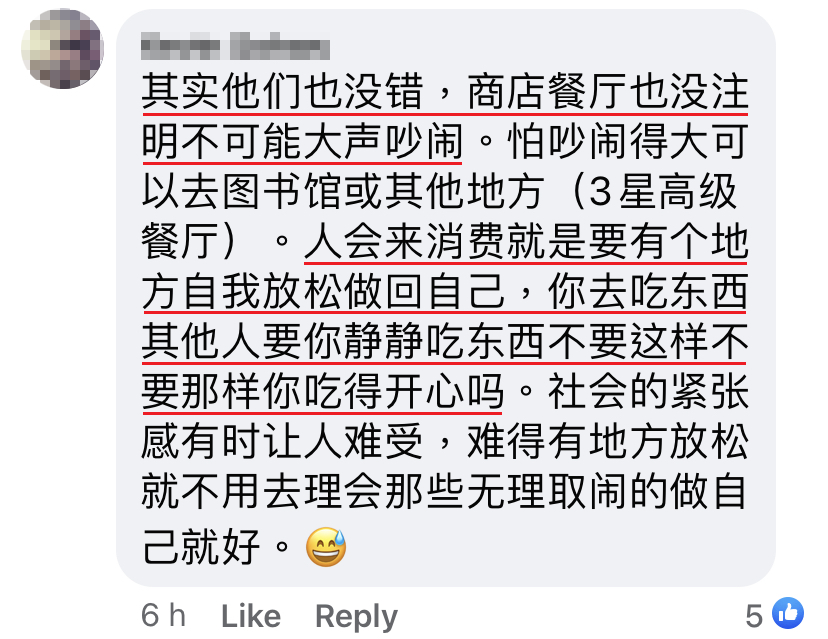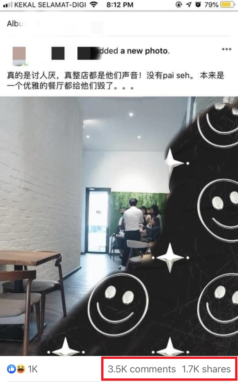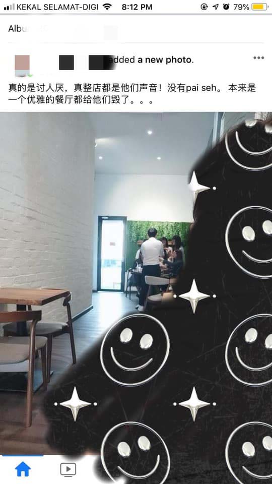 就算真的要放来宣示不满,你也可以打马赛克。如果你不想当面跟我们说,你也可以让服务员告诉我们。若我们知道惊扰到其他的顾客,一定会控制住的。