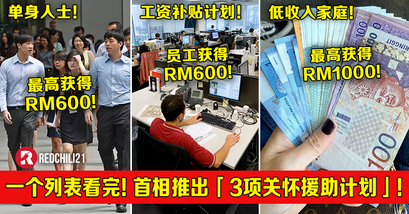 - 月收入不超过RM2000的单身人士 —— 10月尾可获得RM350;明年1月获得RM150