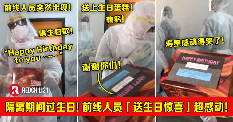 据《星洲日报》报道,寿星在采访时表示自己的生日是10月15日,原以为会在隔离宿舍里独自度过生日,但没想到会收到惊喜。