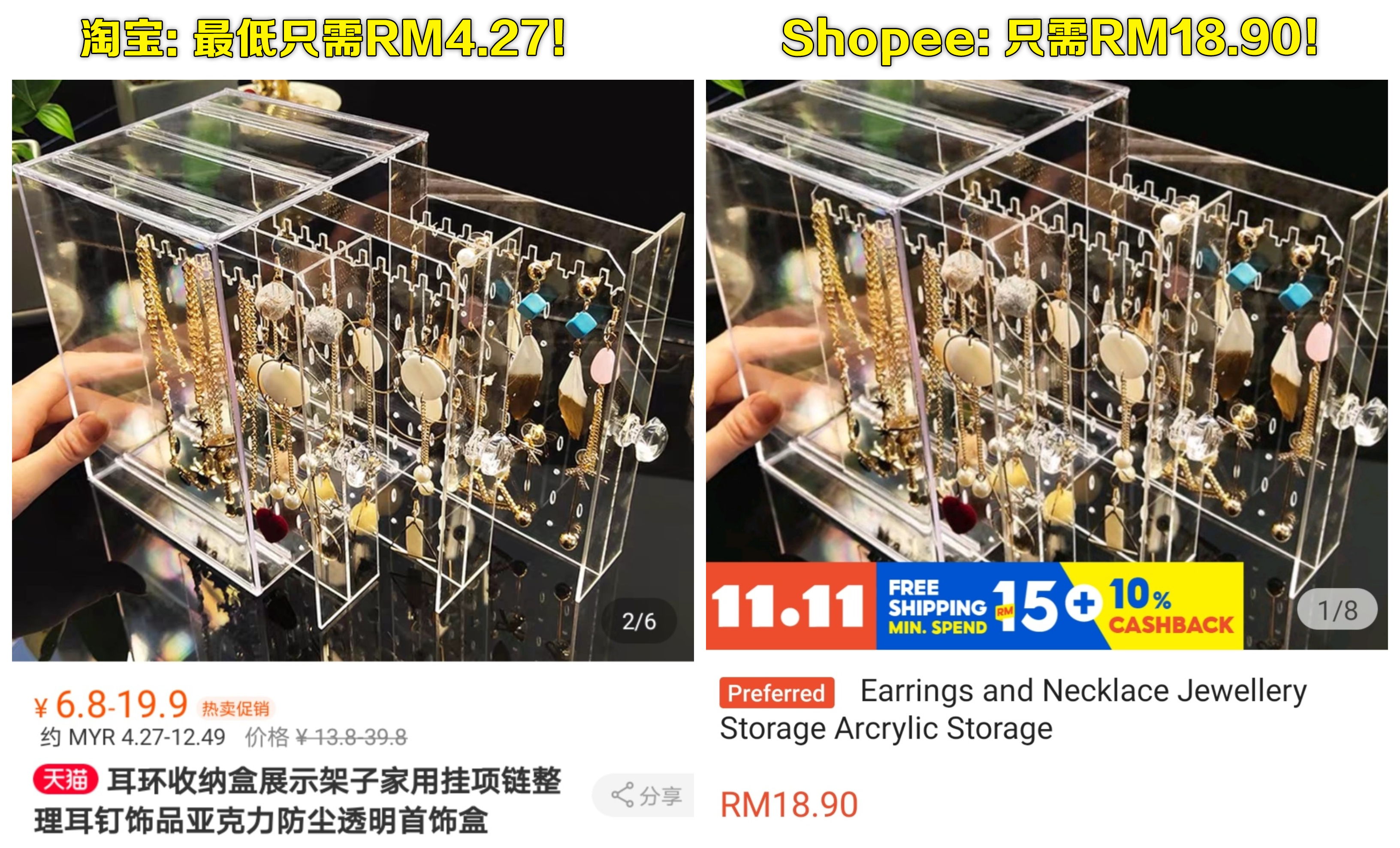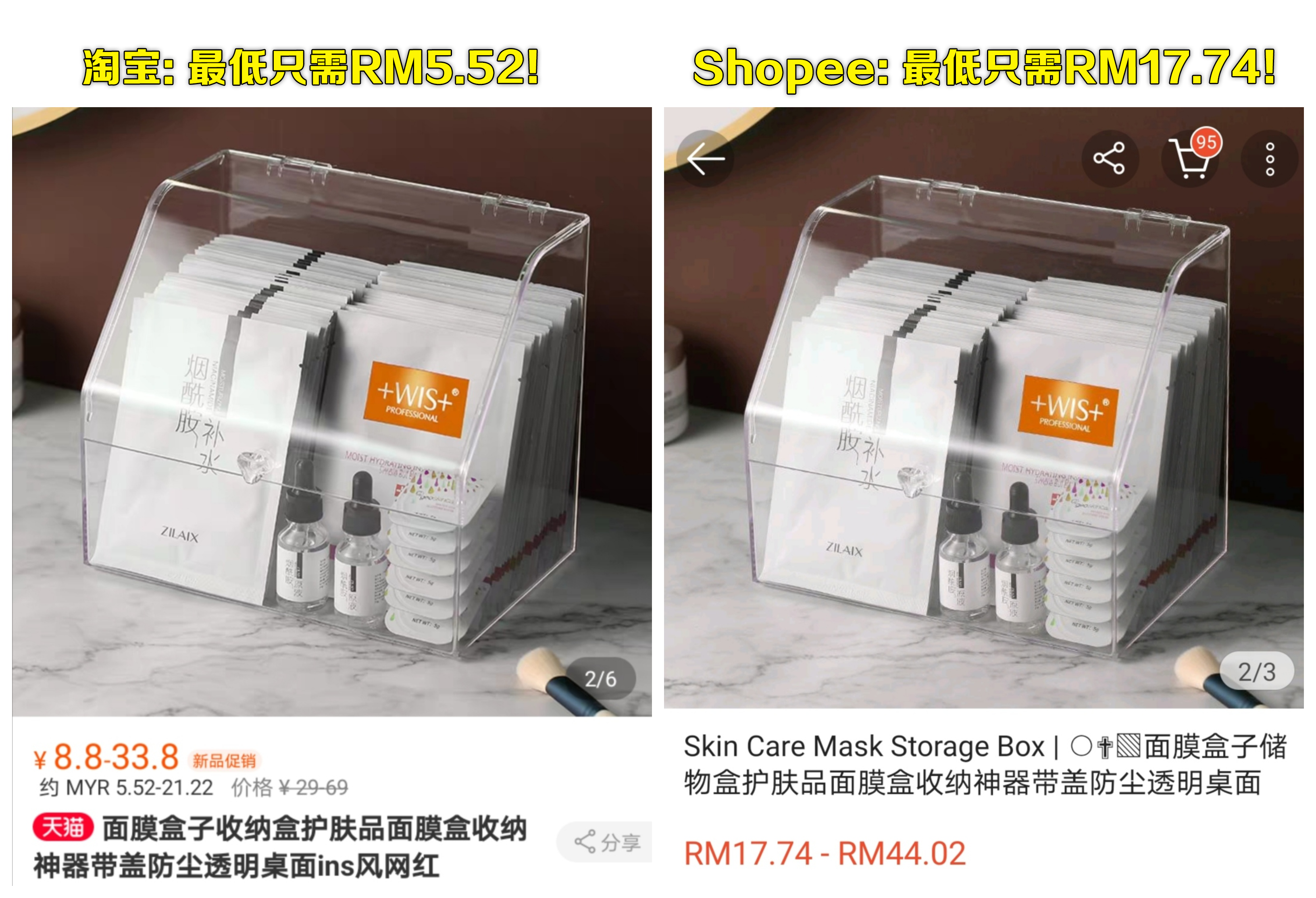 让小编惊讶的是,在淘宝上售卖的收纳盒最低只需RM5.50!