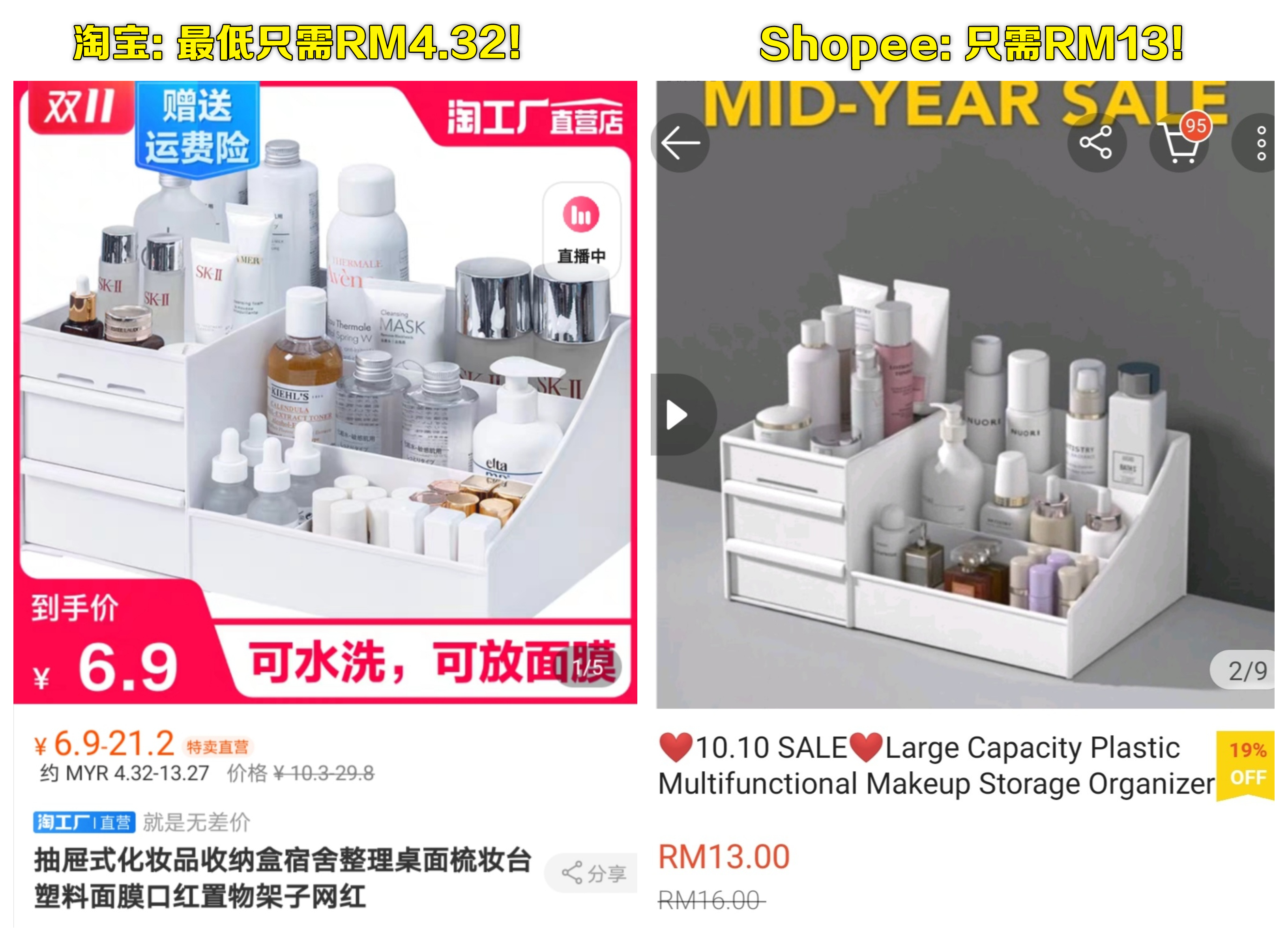 ① 抽屉式化妆品收纳盒 —— 淘宝最低只需RM4.32