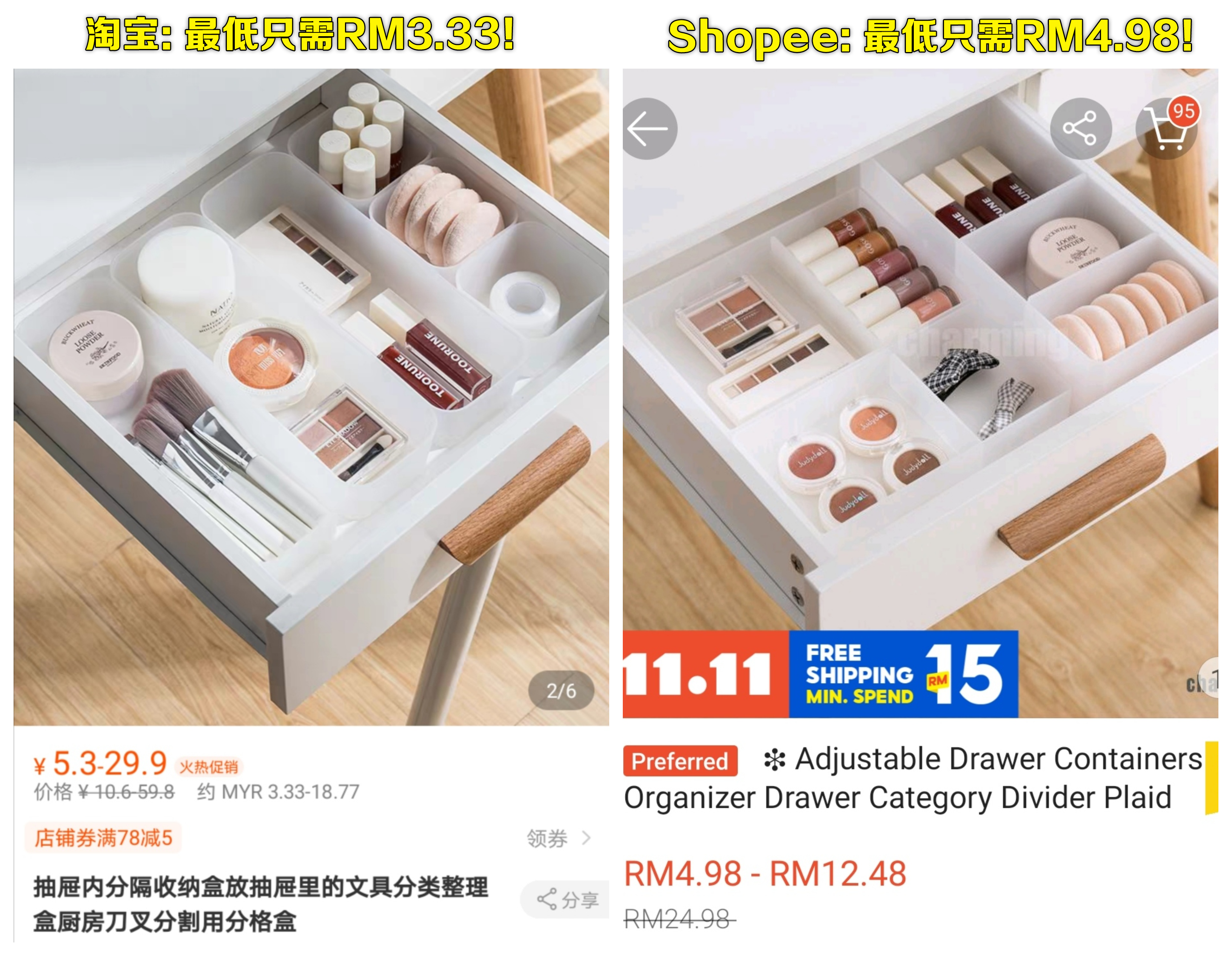 ② 抽屉内分隔收纳盒 —— 淘宝最低只需RM3.33