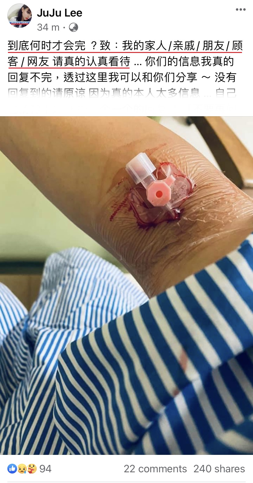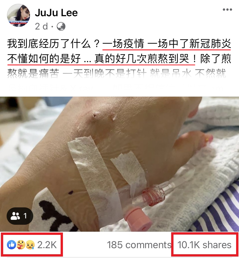 我到底经历了什么?一场疫情、一场中了新冠肺炎,不懂如何的是好… 真的好几次煎熬到哭!除了煎熬就是痛苦,一天到晚不是打针就是吊水,不然就是抽血插针和 X-ray…. 如果不相信的可以来pm我,我让你看身上的针洞和管子。