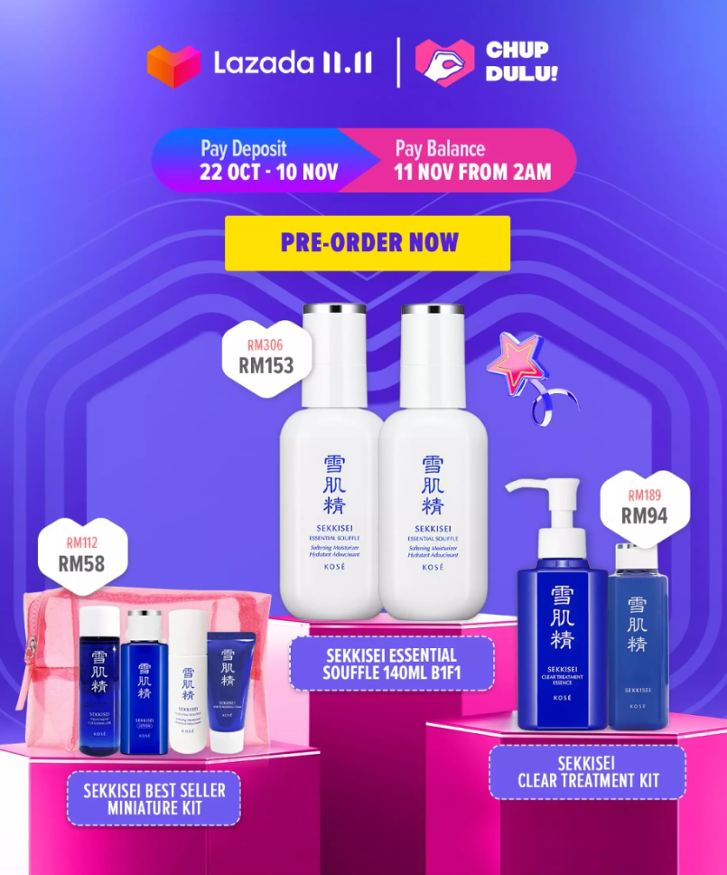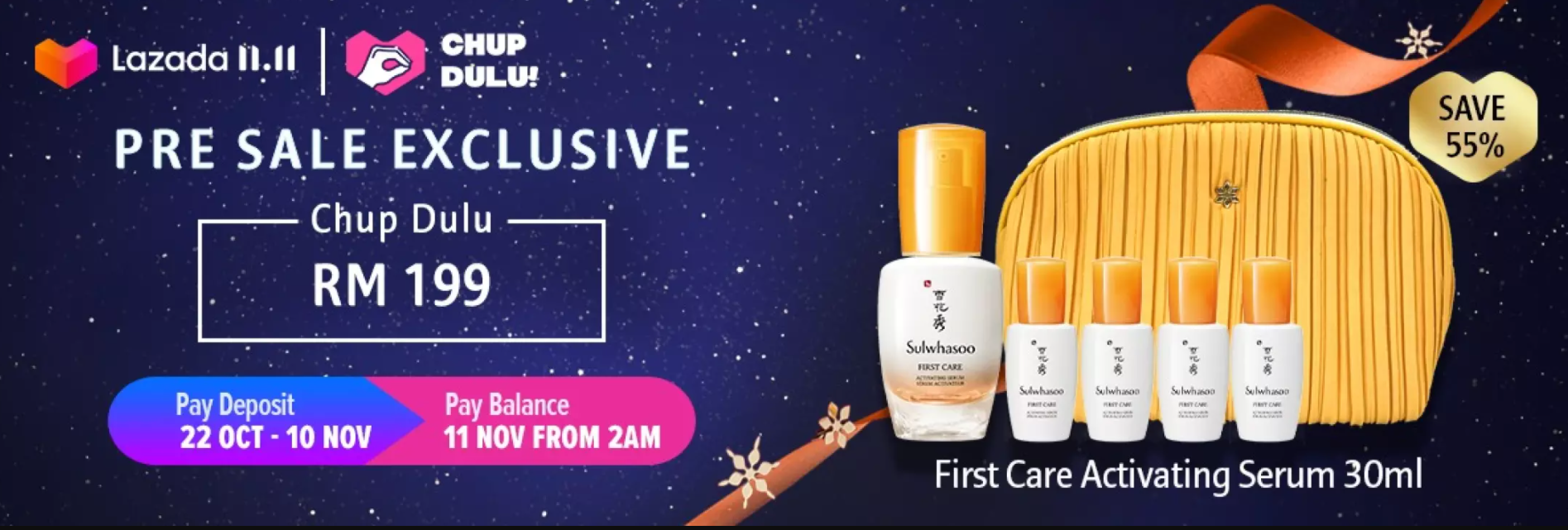 虽然距离双11还有2个星期多时间,但大马网购平台Lazada 与众多护肤品商家纷纷开始推出【双11】特别优惠!只要你在双11前预购可获得更多优惠折扣哦!
