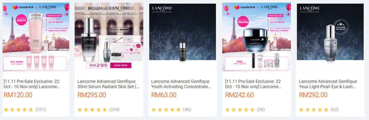来源:Laneige/Lazada | Clinique/Lazada | Origins/Lazada | Estee Lauder/Lazada | Sulwhasoo/Lazada | Kose/Lazada | Lancome/Lazada | L’Occitane /Lazada | MAC/Lazada | Bobbi Brown/Lazada