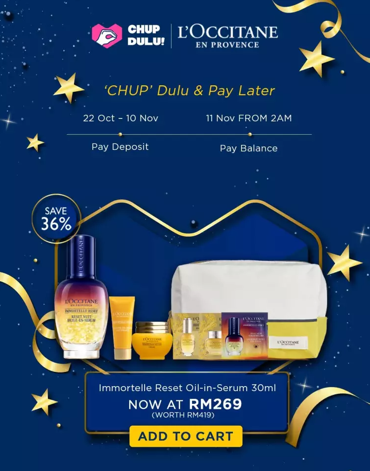 ▼【预售】 L’Occitane Immortelle Reset Oil-in-Serum 30ml + 6pcs Gifts(价值RM419)——只需RM269