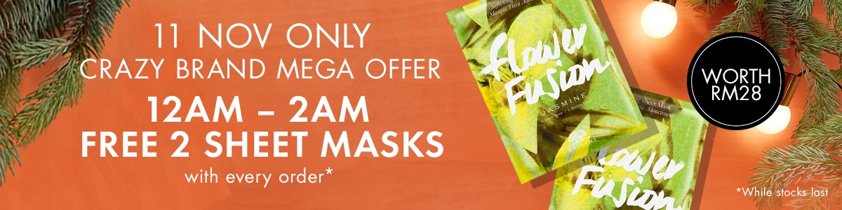 ▼ 还有一项好消息是:在双11当天的12am至2am,购买产品可免费获得价值RM28 的2片面膜!