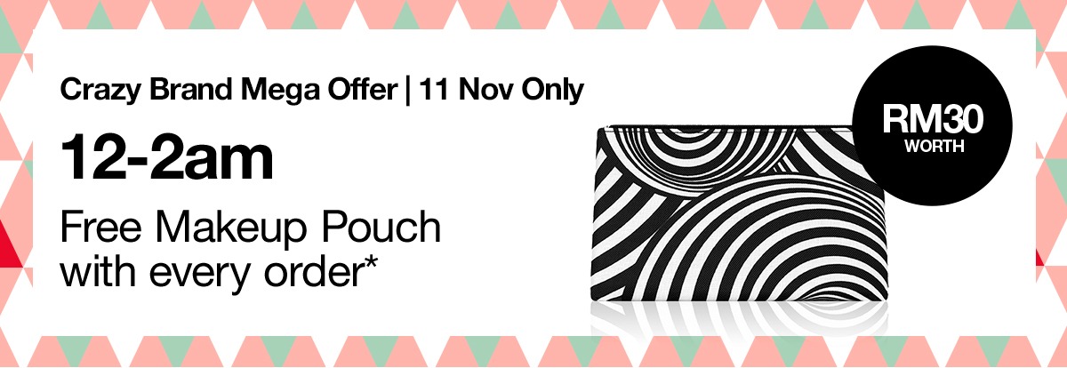 ▼ 注意!倘若你在双11当天的12am至2am 时段消费,可免费获得价值RM30 的化妆包!