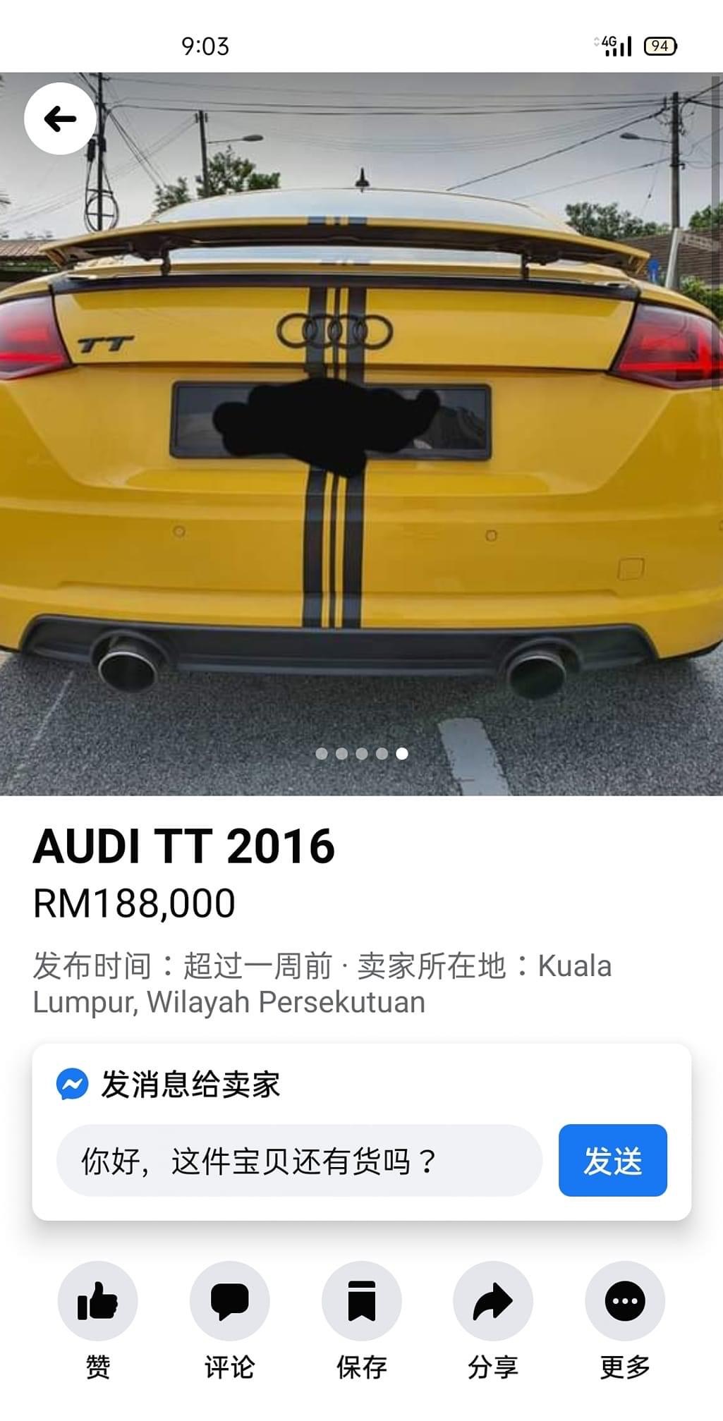 亲爱的(VIP XXX)TT车主,您的车很帅,不知道您的本人是帅还是美!可是我可以肯定的是,您本人的心态一定不会美或帅!