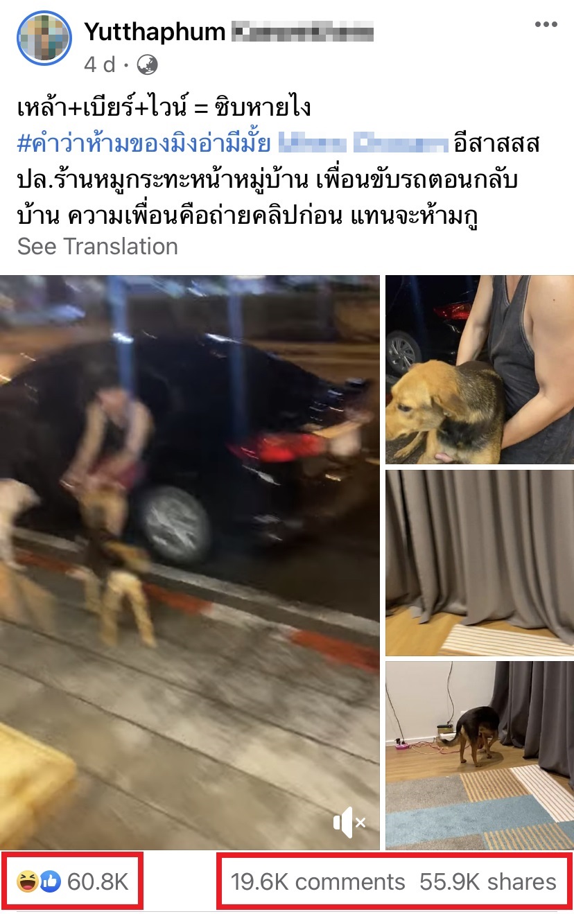 近日一则帖文在面子书疯传,泰国一名男子和友人去喝酒,结果喝醉以后竟然从街上随便抱了一只流浪狗上车,然后带回家过夜!该帖文在短短几天内,就多达56,000次分享和61,000人点赞,笑翻网民!