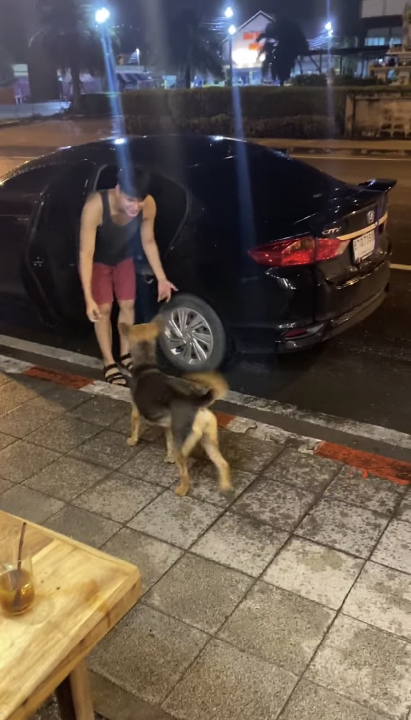 事发第二天,男子的友人告诉他真相以后,他觉得很愧对狗狗,于是急忙出门购买一些烤鸡肉串、鸡肝等食物给狗狗吃。后来因为担心狗狗已经有主人,所以还特意开车带狗狗回到该烤肉店。