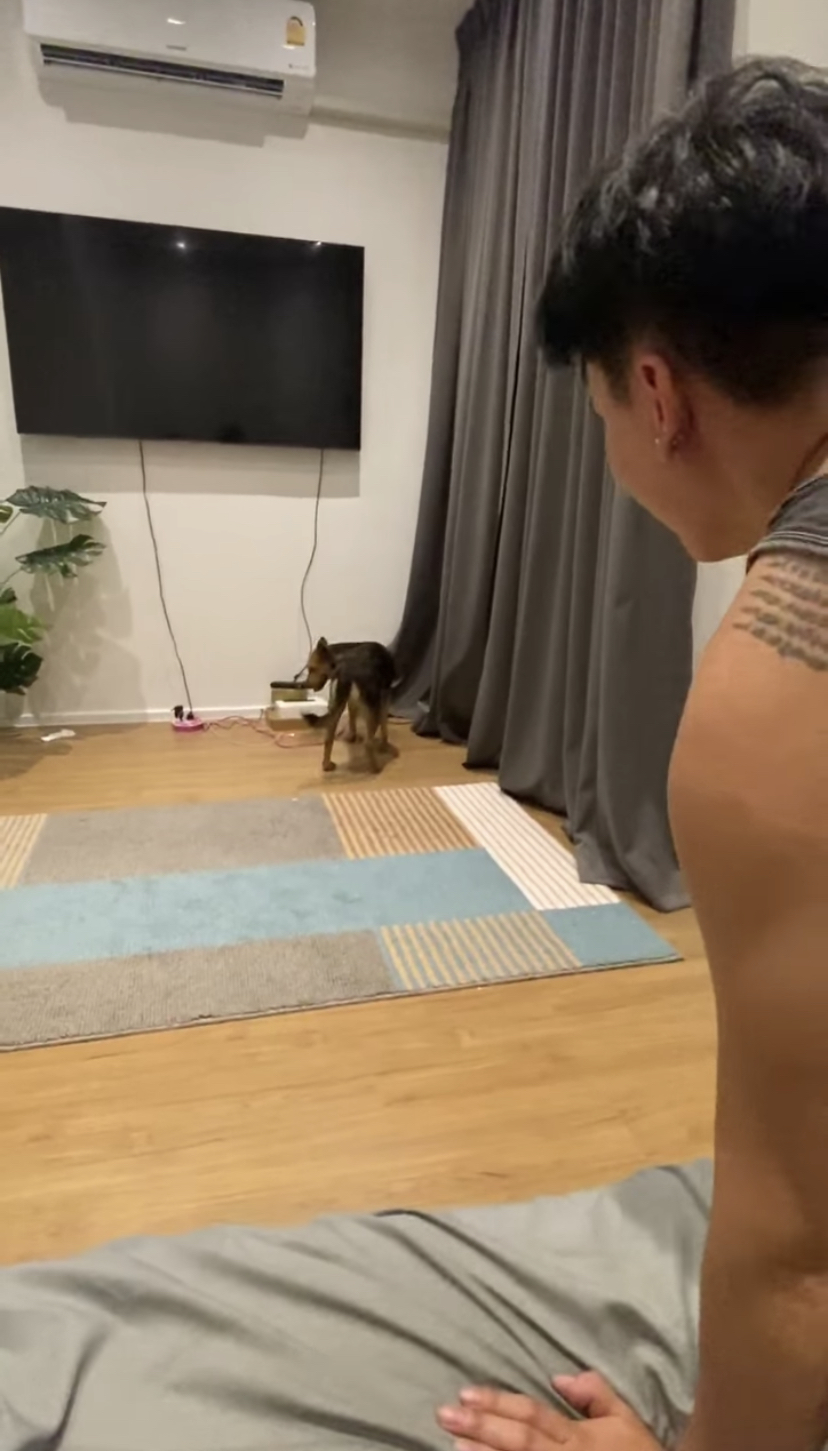 虽然他是个“新手爸爸”,但他愿意用时间和精力来陪这只“意外收养”的狗狗。他还称赞“Boom”不会在屋内大小便,让他感到非常骄傲!