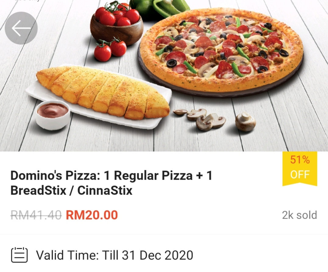② Domino’s Pizza —— 1份Regular Pizza + 1份BreadStix/innaStix 只需RM20