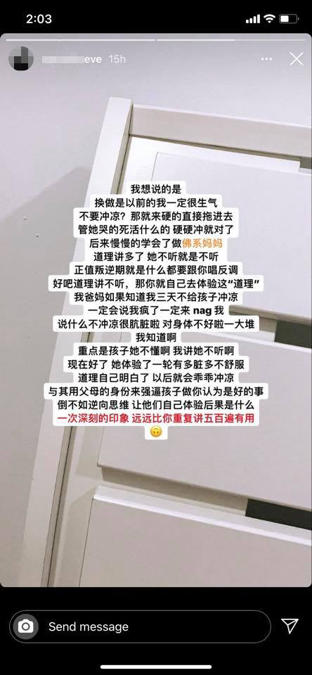▼ 有些家长则表示无法忍受孩子3天不洗澡。