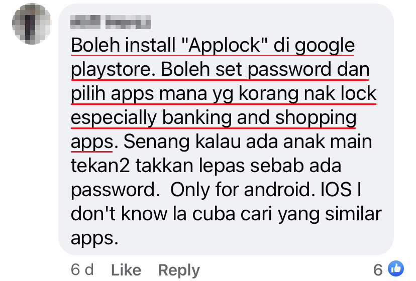 ▼ 网友们建议家长在手机里下载 “Applock” App,将重要的 App 上锁起来,就可以避免类似事件发生。