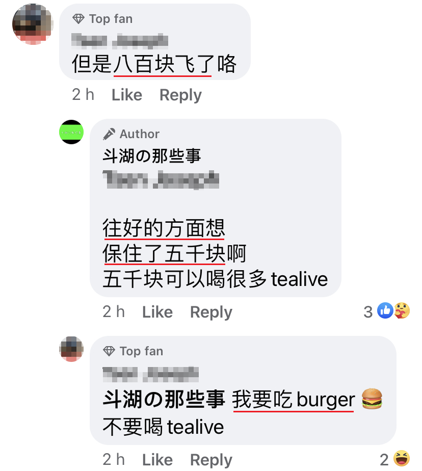 ▼ 虽然失去了 RM800 来买一杯奶茶,但保住的是更大的 RM5000 啊!