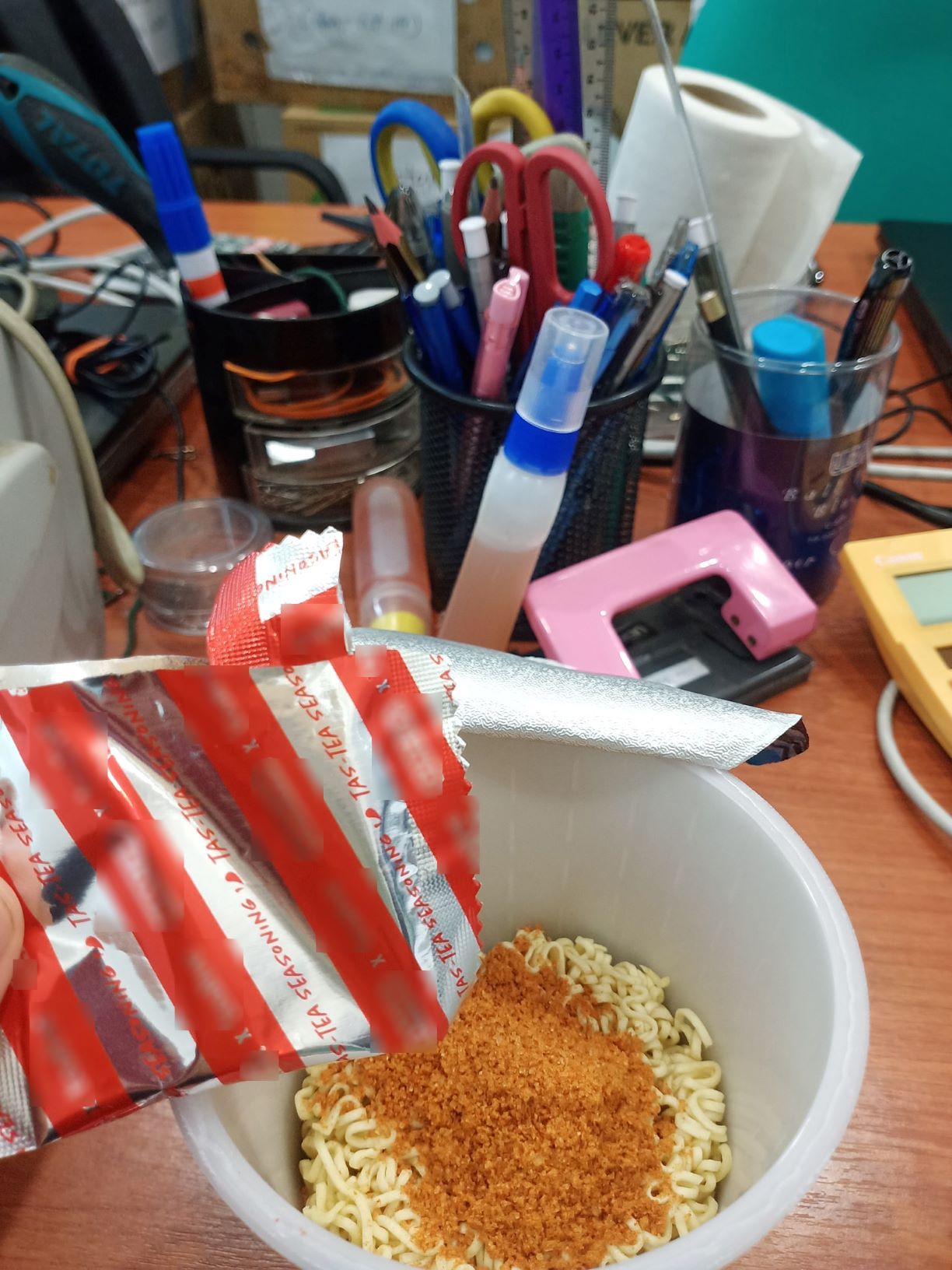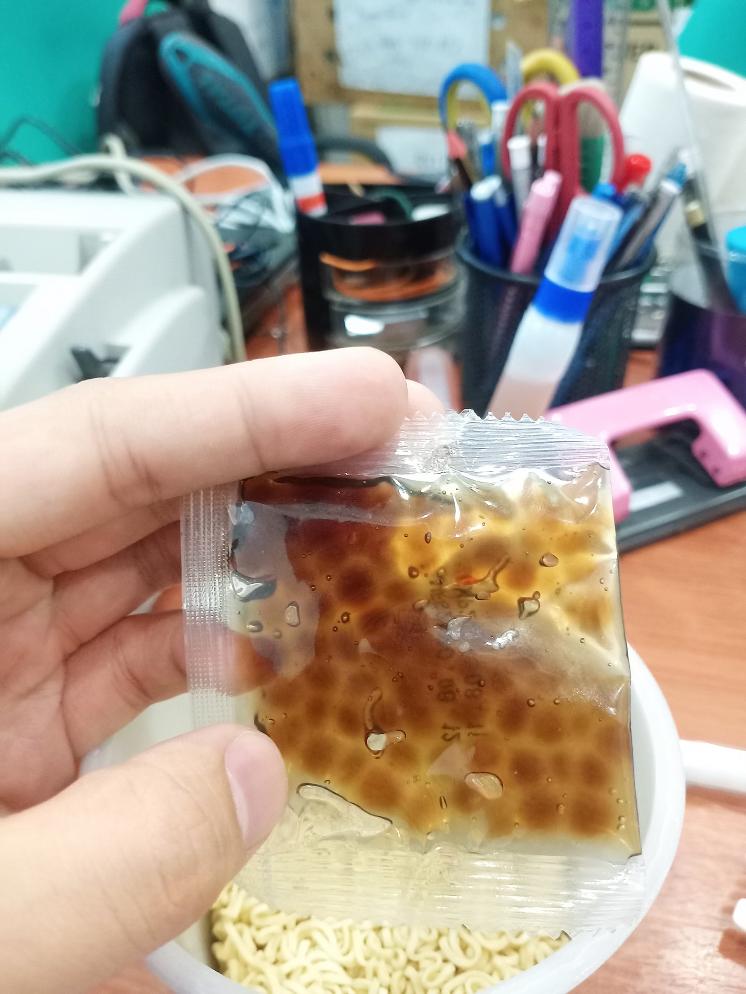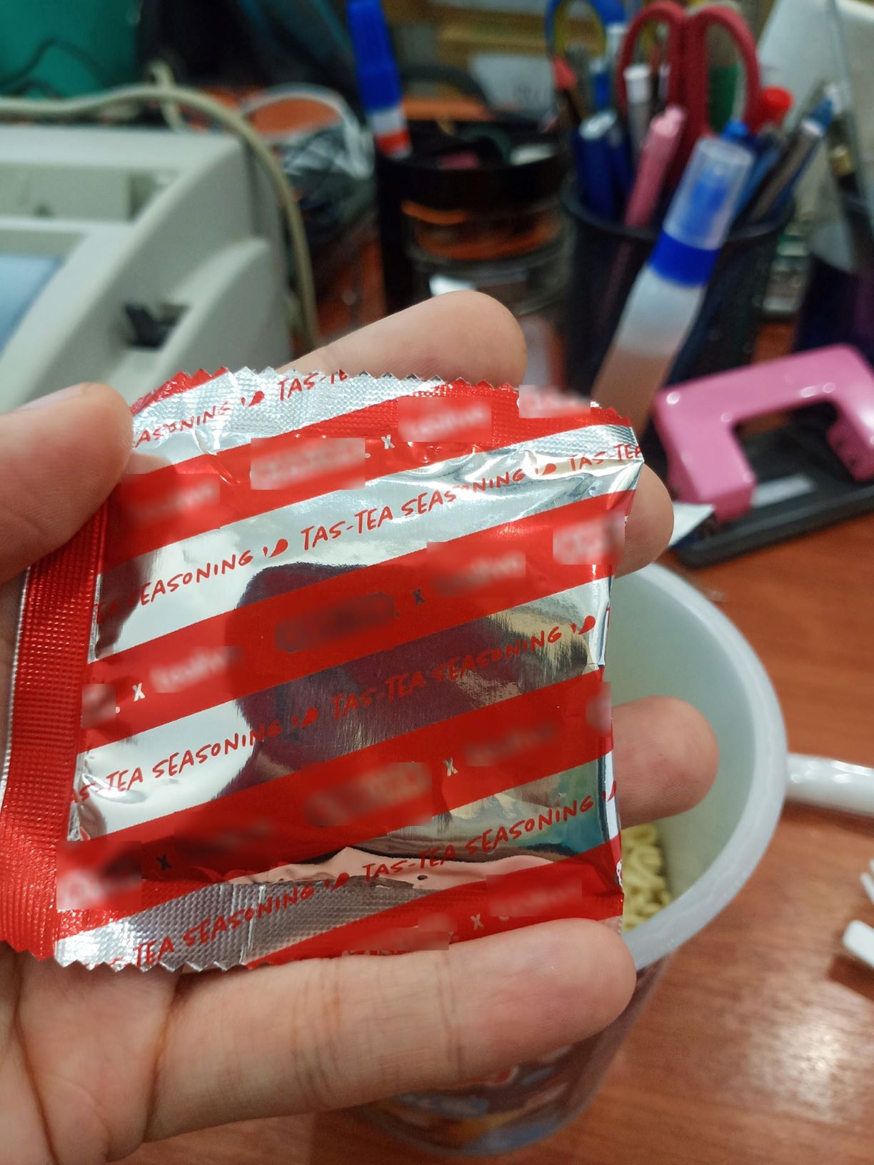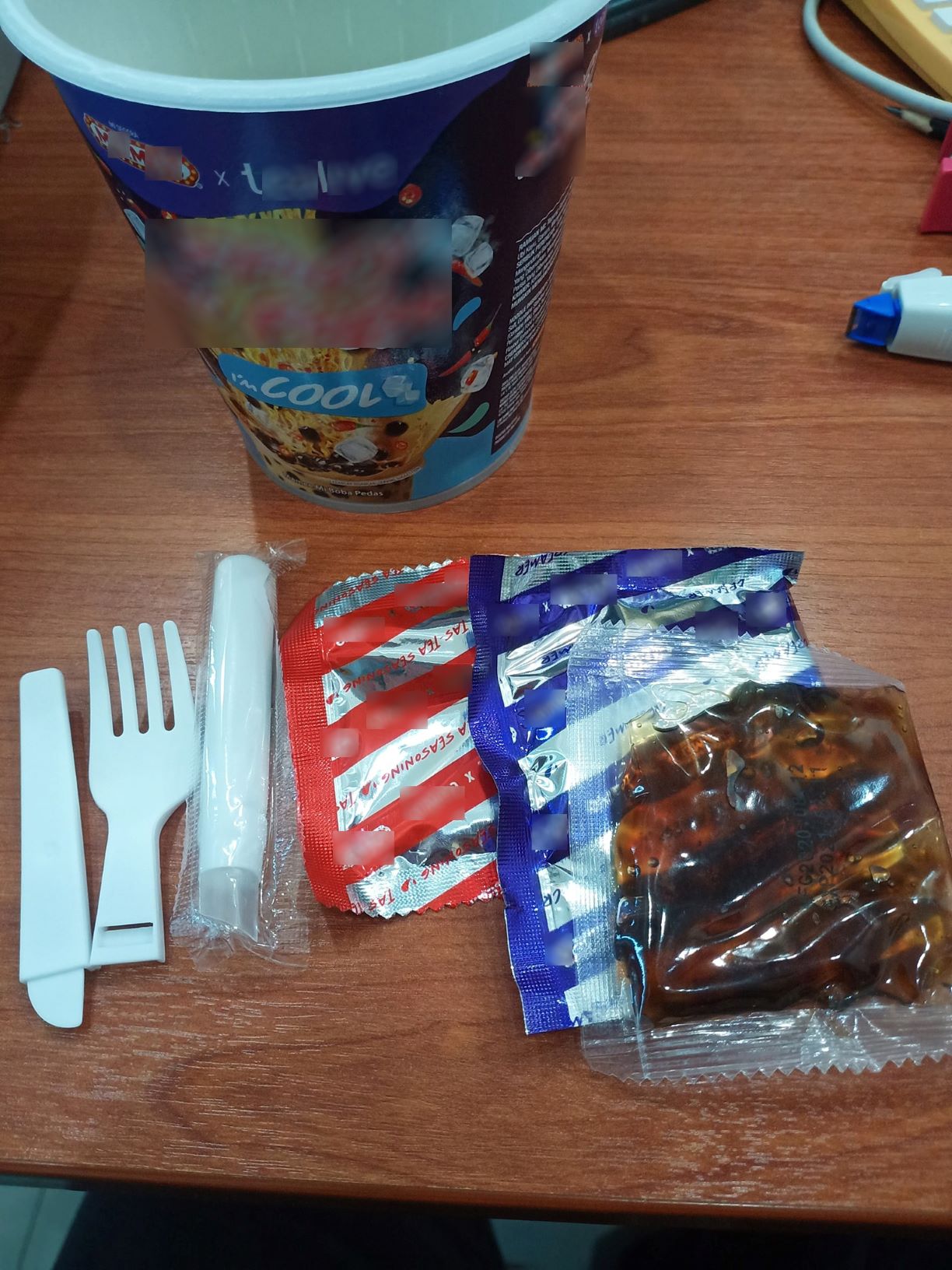 奶茶的味道很香,但是它是甜味带辣味的。面也比平常的 Mxmxx 面还要不好吃…