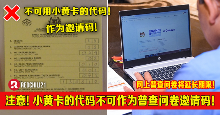 根据MyCensus 2020 在面子书发出文告显示:民众不可使用小黄卡上的代码来作为邀请码。由于小黄卡上的资料是10年前的资料,因此MyCensus 2020表示小黄卡上的代码是不可直接作为邀请码。