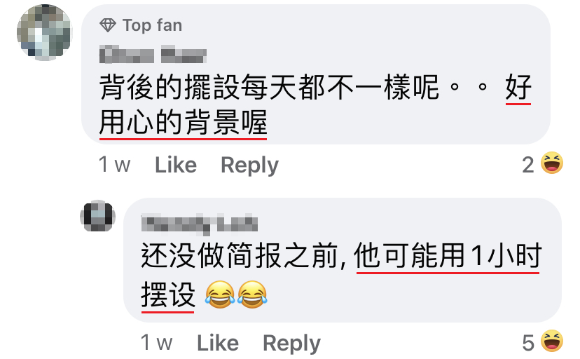 针对防长每天直播的背景都有所不同,一名记者日前在直播的时候就向防长问起这件事,防长表示自己并没有刻意利用背景的摆设来夺取关注或是炫耀哦!