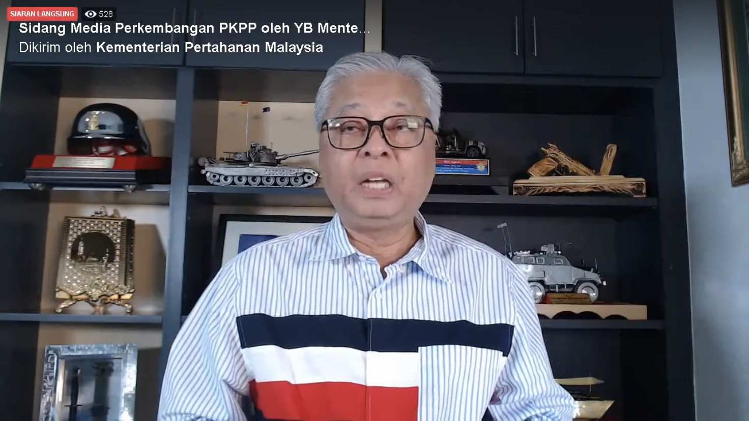 自从大马的高级政务部长(国防部)Datuk Seri Ismail Sabri Yaakob 开始14天的居家隔离以后,就将原本的汇报记者会改为在他的家里进行直播。然而防长居家隔离的这段时期,每天记者会的焦点除了最新政策,另一个就是防长身后的橱柜摆设!